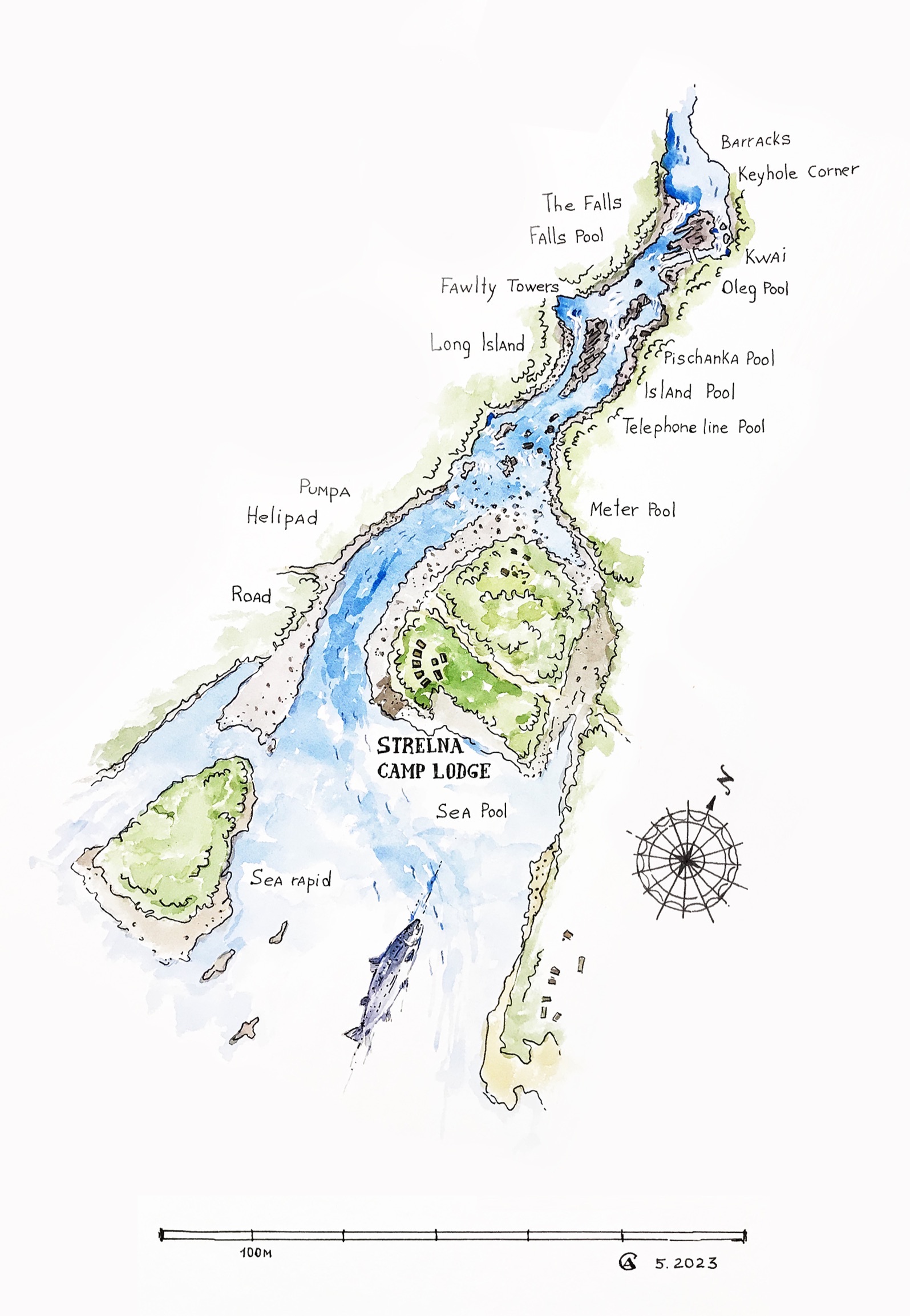 Лагерь «Стрельна» находится в устье одноименной северной реки, среди нетронутых суровых пейзажей Терского берега. В лагере с комфортом разместятся до 12 человек на рыболовной неделе: 3 благоустроенных дома, каждый из которых состоит из 2 отдельных двухместных комнат.